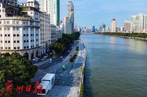 阳光下的珠江长堤一带。