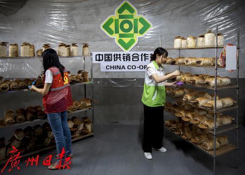 近几年,包括芬姐在内的50多户村民,在白云区供销联社、村委会的支持下,陆续加入竹三村农业农民专业合作社,投身灵芝种植行业。竹三村探索创新“村-社-研-企”共建模式,合力培育发展赤灵芝等食用菌产业,进一步帮助村民创业增收。