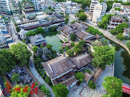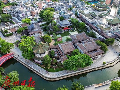 粤剧艺术博物馆旁的河涌边上,游人三三两两游览。
