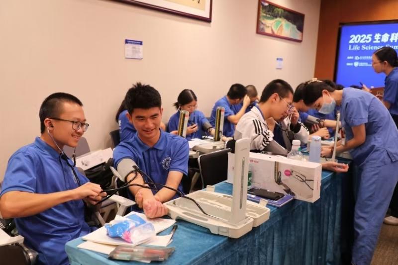 当天下午,医生和护士们精心安排了理论与实践深度融合的医学课程。在《生活习性与疾病预防》专题讲座中,芦苇医生通过真实临床案例,深入浅出地讲解了肿瘤三级预防策略,分享实用的健康生活方式建议;在《生命体征的意义》一课中,廖意医生用生动的比喻将复杂的生理指标转化为通俗易懂的健康密码;最受期待的实操环节,周敏平和朱利平两位护士长化身“临床导师”,带领同学们开展沉浸式医疗技能训练——规范操作血压计、听诊器等医疗器械,体验“一日医护”的职责与使命,现场学习氛围热烈。
