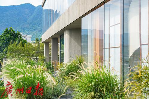 正果驿站取形正果客家围屋造型,融合现代岭南建筑手法,框景山水,灰黑色的屋顶别具一格,两栋楼体对称呼应,间有流水蜿蜒而过,象征两山与增江,配套建设观景台可直接眺望增江和老街。