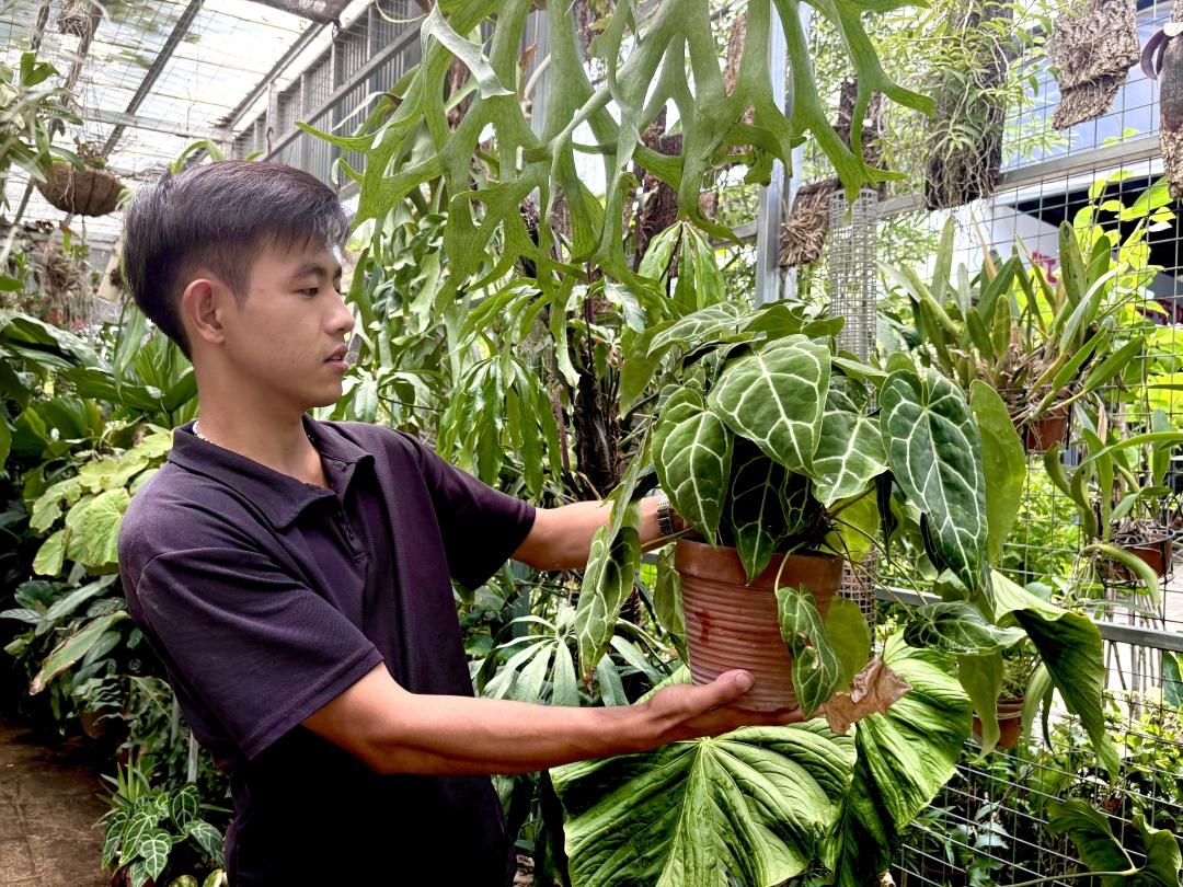 在这里你还能追上植物界最时髦的热植潮流。作为近年来颇受世界各地年轻人喜爱的绿植种类,热植常常与ins风家居联系在一起,成为年轻人的“新潮玩”。在岭南花卉市场东区以及B区,商家早已嗅到商机。叶片细腻如绿丝绒、叶脉泛荧光的花烛,有着奇特斑纹、斑点叶子的秋海棠,粉色的彩叶芋,各式各样的蔓绿绒被摆上显眼位置,等待人们把它们带回家。