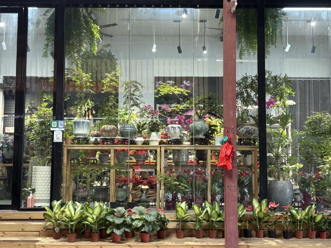 在吹着空调的精品绿植店,造型别致的枫树盆景、蝴蝶兰,高大青翠的龟背竹、米竹、凤尾竹,还有悬于头顶的霸王蕨等……一间间小店就像是一个个养眼的绿盒子,视觉上已让你感到清凉。