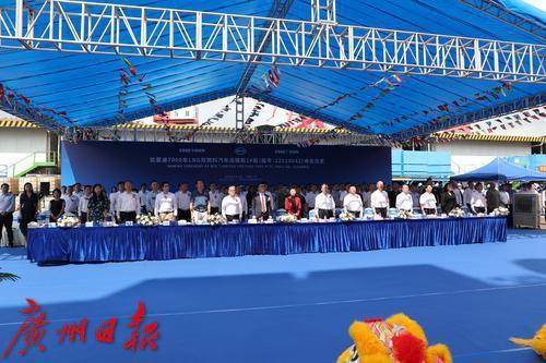 7月16日,中船集团广船国际为比亚迪建造的7000车LNG双燃料汽车运输船2号船“比亚迪 郑州”号在广州南沙命名交付。