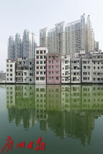 2011年9月,水塘倒影着改造中的冼村房屋。