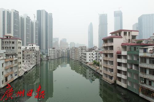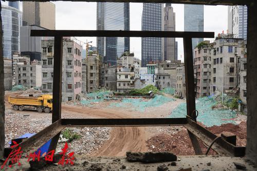 2011年3月,拆迁中的冼村,背景是当时刚刚崛起的珠江新城。
