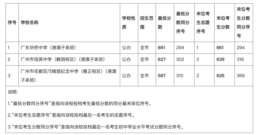 2025年广州中考第一批次普通高中港澳子弟班录取分数