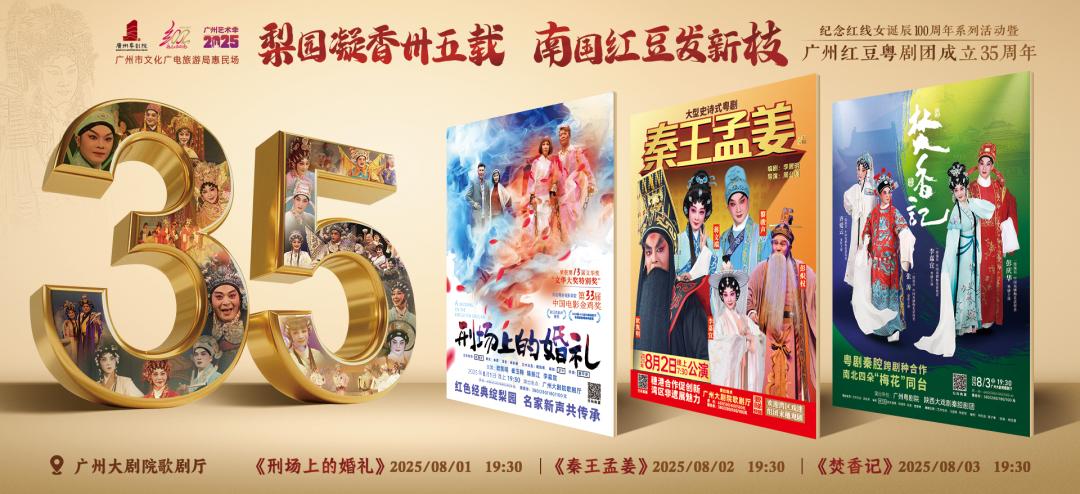9朵“梅花”领衔,顶流老倌齐聚!8月1日—3日,广州粤剧院将在广州大剧院推出《刑场上的婚礼》《秦王孟姜》《焚香记》三部团庆大戏,从艺术传承、湾区合作、剧种融合三大维度展示红豆团35年艺术成果,剧目将由欧凯明、黎骏声、彭炽权、蒋文端、崔玉梅、李嘉宜、陈振江等粤剧名家及秦腔名家齐爱云、张涛联袂献艺。本次演出也是广州市文化广电旅游局惠民场与广州艺术季2025的重要活动。