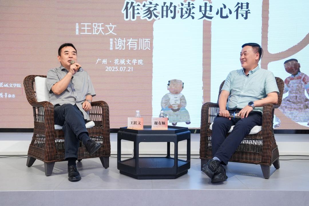 7月21日,“花城文学课”第19讲邀请到了中国作协主席团委员、湖南省作家协会原主席、著名作家王跃文与中山大学中文系教授、广东省作家协会主席谢有顺。两位名家就“细节中的历史——作家的读史心得”这一主题进行了深入的对话与分享。王跃文是中国当代极具大众影响力的作家之一,其作品如《国画》《梅次故事》等广为人知。讲座在《花城》杂志官方视频号“花城文学课”等多平台同步直播,在线观看人数超过5万。