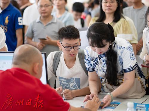 2025年7月23日,广州市轻工职业学校科教城校区,不少家长带着新生进行入学注册。