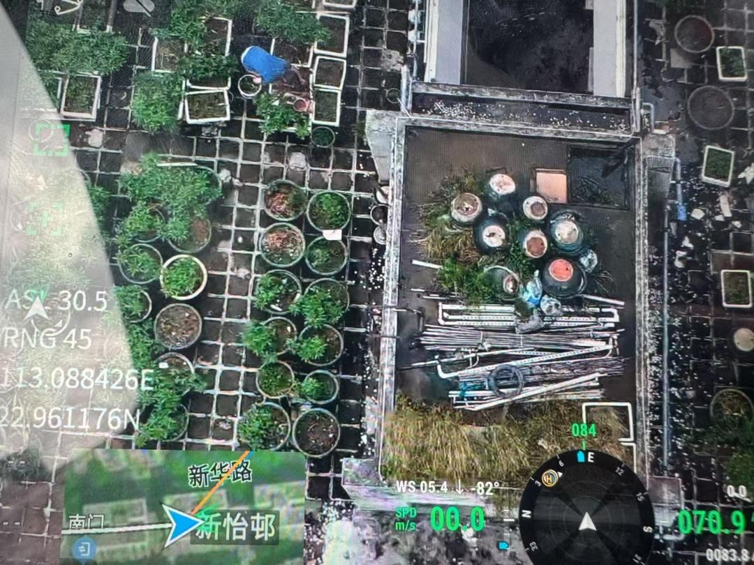 在南海九江镇,同样通过无人机智能巡查技术,短时间内覆盖居民楼、厂区等大面积区域,将楼顶花盆等各类隐蔽盲区一一锁定,并实时回传的孳生地位置、面积等数据,让社区工作人员无需盲目巡查,可依据数据直奔目标点位,精准开展消杀作业。