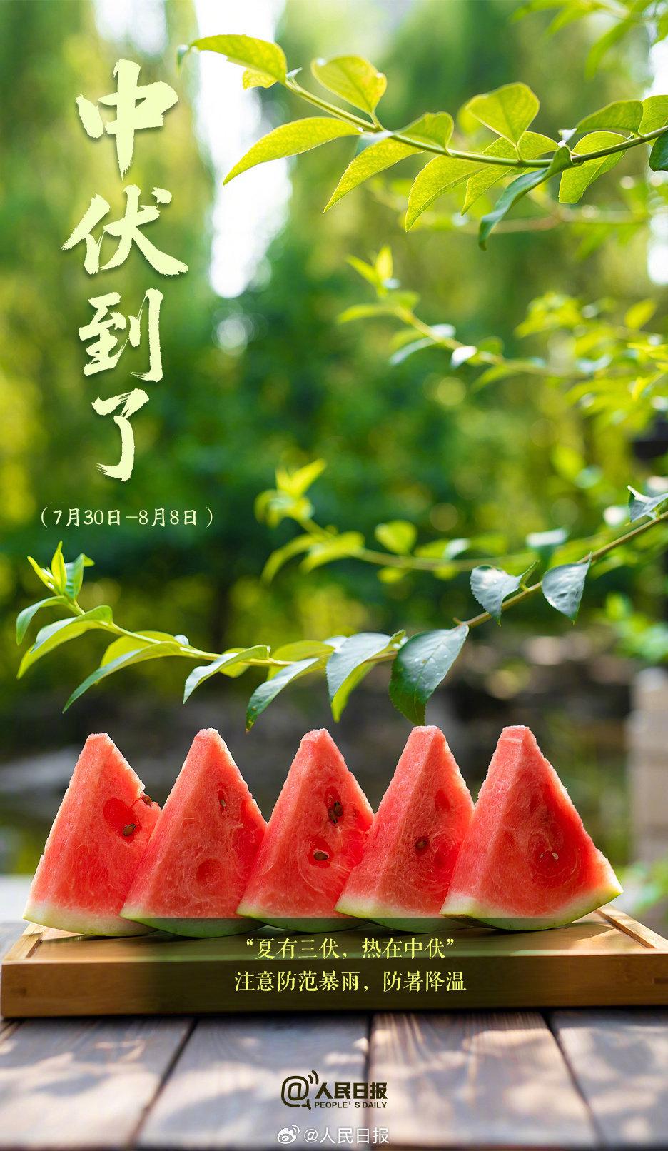 今年的中伏时间为7月30日到8月8日,目前三伏天已经过了三分之一。