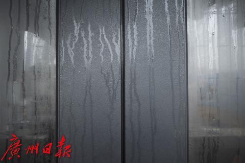 8月4日,广州市受季风低槽影响,有暴雨局部大雨,空气湿度大。图为广州市天河区市民冒雨出行;由于室内开空调温度低,室外湿热的水汽凝结在玻璃上。