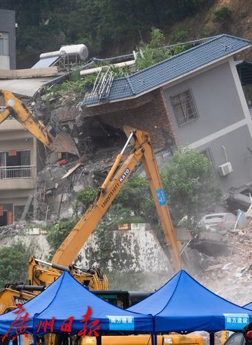 8月7日17时左右,位于最前方的两栋受损房屋已基本被破除。