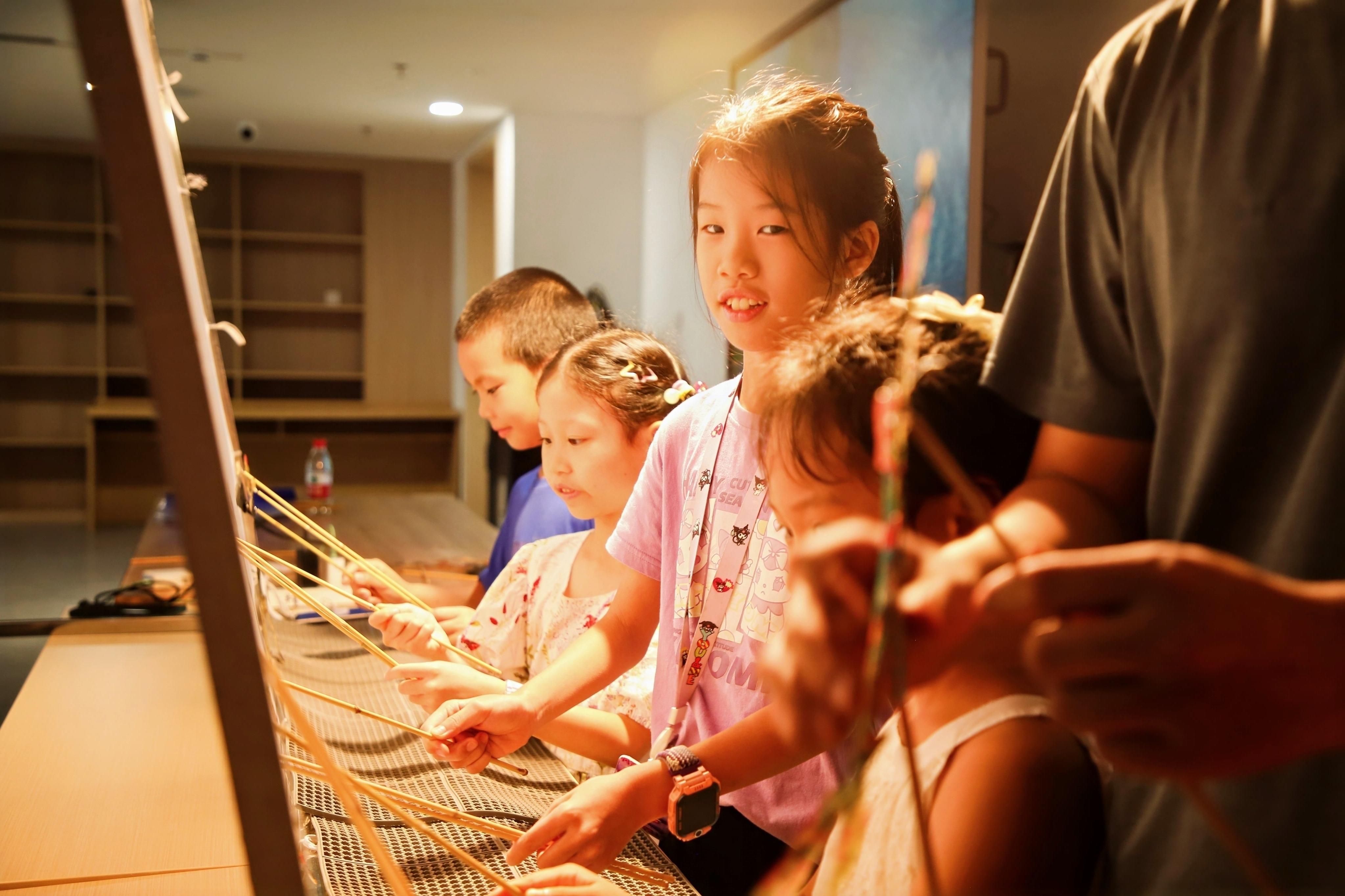 系列活动中,两场关于“言传”的亲子非遗活动,用光影与歌声这两种最直接的方式,在孩子们的记忆中续写童年故事。家长们陪伴着孩子,亲手制作皮影道具、排练戏剧。整个过程中,家长有了观察和记录孩子的宝贵机会,孩子们也收获了一段不被打扰的陪伴时光。当熟悉的《云宫迅音》旋律在南风传韵舞台响起时,孩子们与家长共同完成“一家人·一台戏”的成果汇报演出,浓浓的亲子氛围间,暖意流淌。