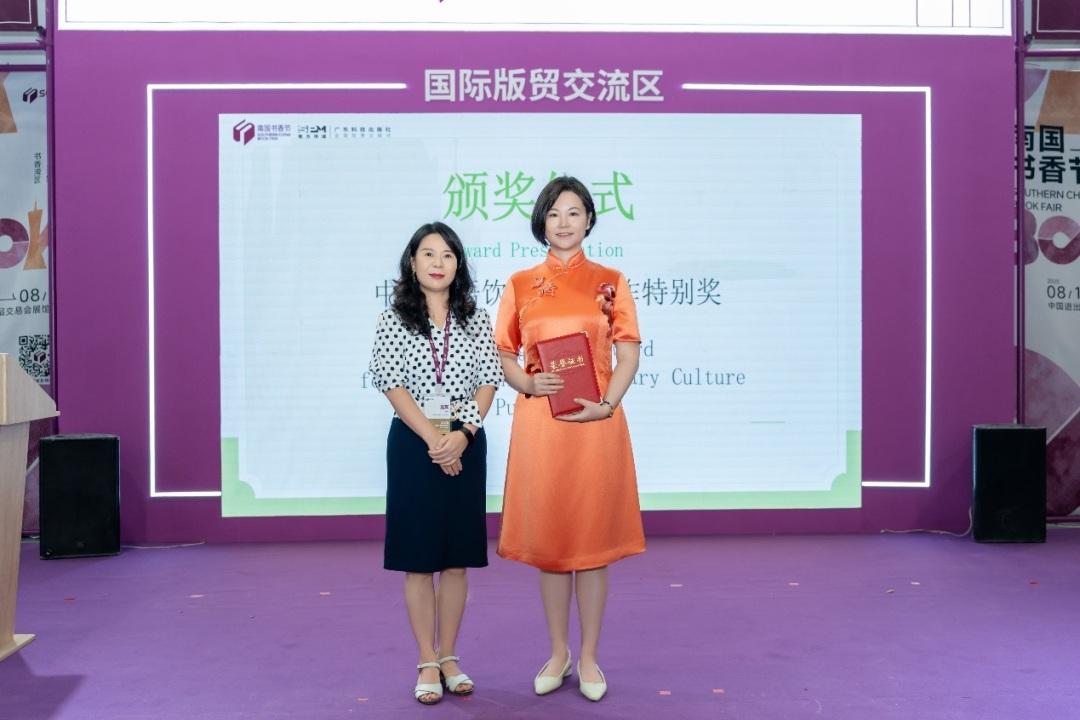 图 / 广东科技出版社向李玲玲颁发“中英双语饮食文化著作特别奖”