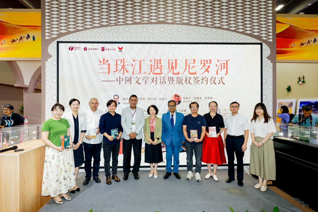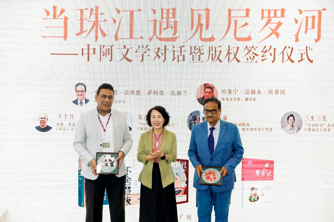 8月16日下午,琶洲国际会展中心阿拉伯国家馆内座无虚席,“当珠江遇见尼罗河——中阿文学对话暨版权签约仪式”在此隆重举行。广东省作家协会党组书记、专职副主席向欣,埃及出版协会会长穆罕默德·法里德·萨阿德·扎赫兰等中外嘉宾齐聚一堂,共同见证了这一历史性时刻。