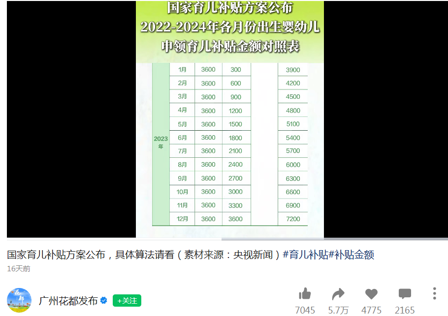 广州花都发布:积极发布、答疑育儿补贴申领相关情况,取得良好传播、互动效果