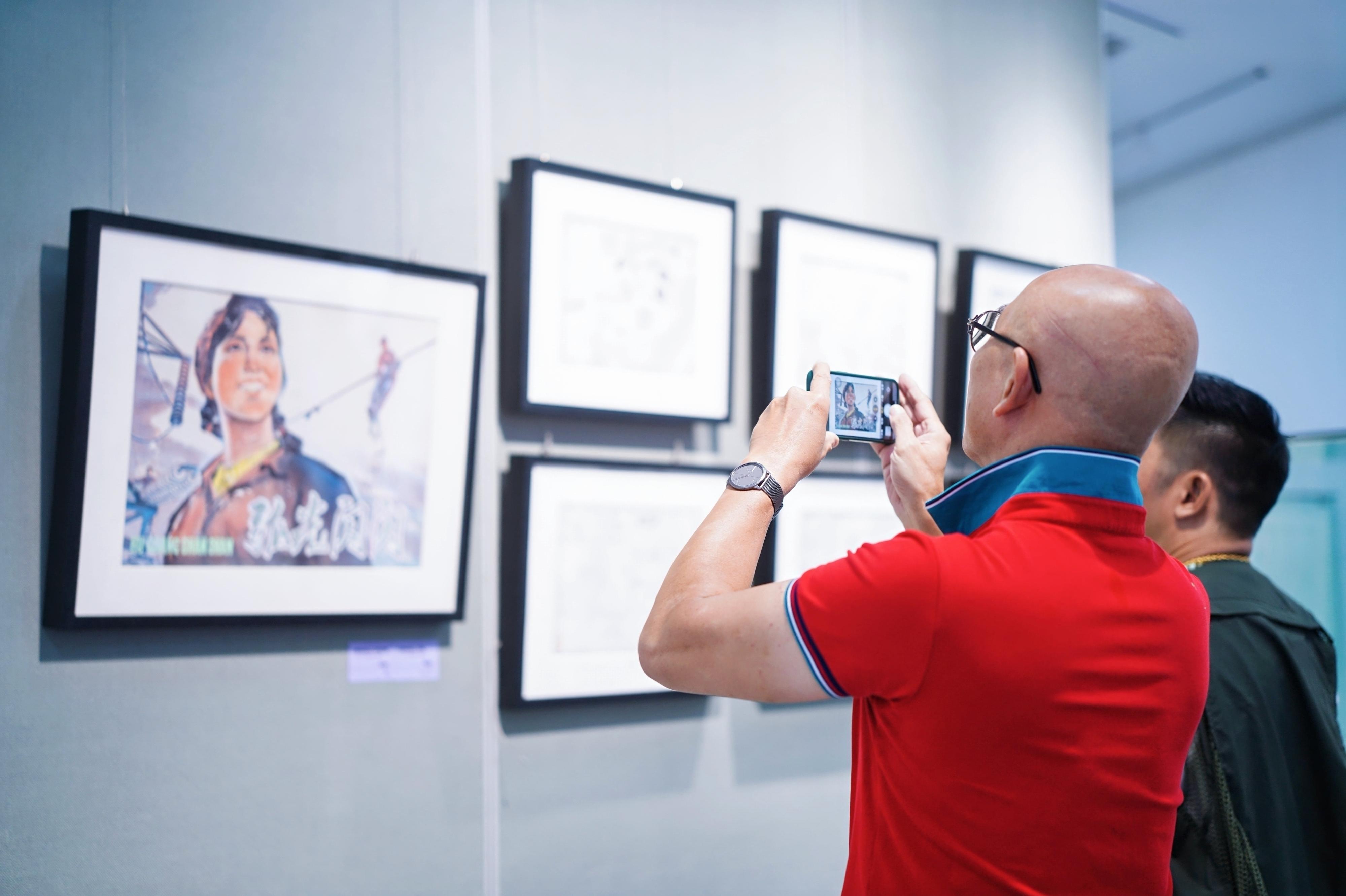 詹忠效的白描技法被美术界誉为“詹衣描”,其推陈出新的治学理念与精神为白描技法的继承与发展奠定了基础,著名美术家吴作人、蒋兆和、关山月、杨之光、范曾、冯远、何家英、卢禹舜等艺术大家都曾撰文,对詹忠效先生的艺术造诣予以高度评价,现场展出的《弧光闪闪》是奠定他画坛领军地位的重磅代表作,细若游丝、力道遒劲的白描刷新了中国白描艺术的崭新高度,此后,他不满足于连环画和插图的探索,转而将目光投向大美术范畴,运用白描技法进行中国画创作,形成独立的个人风格体系,拓展了中国画的边界,蜚声海外。