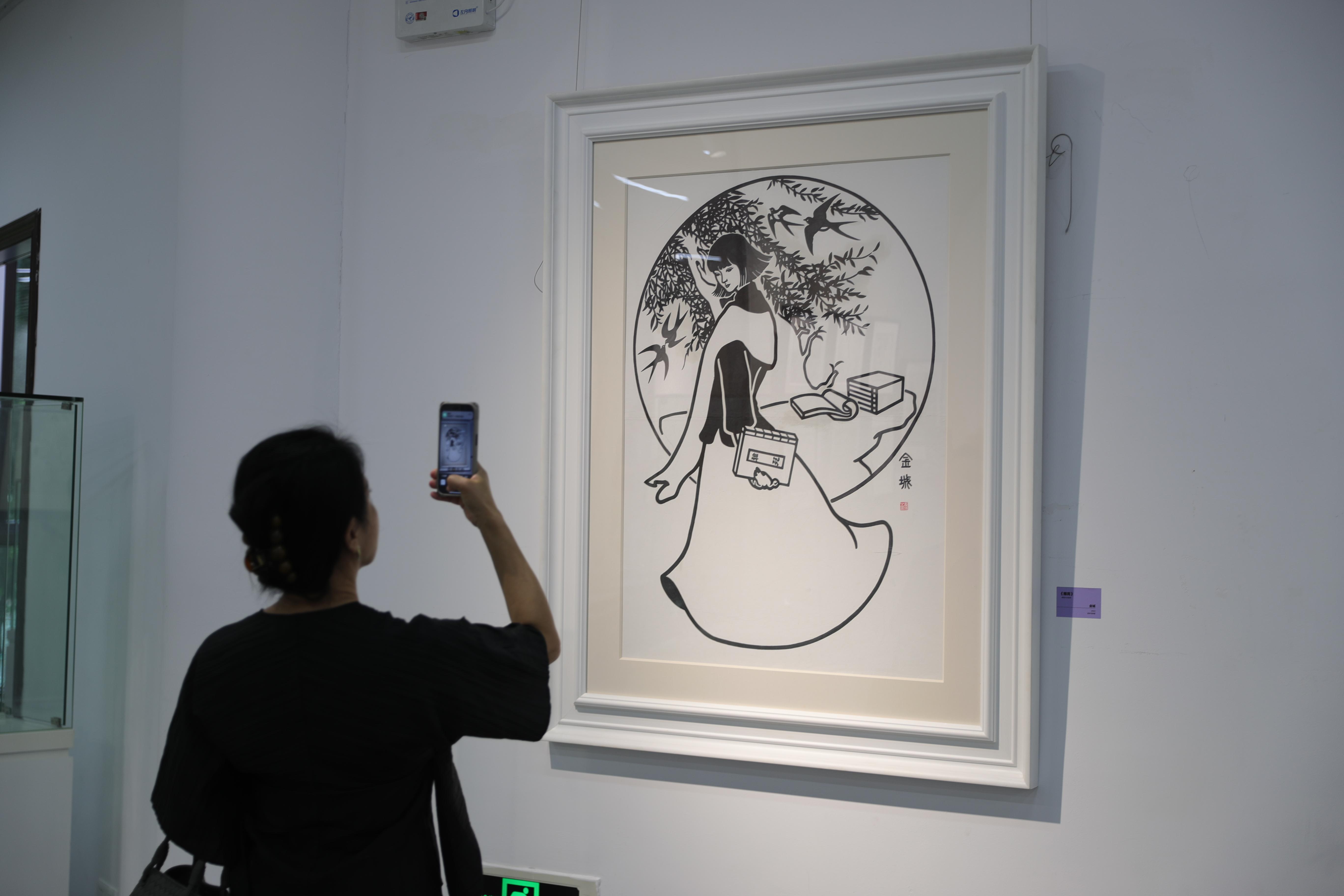 另一位艺术家金城现为广州市文联兼职副主席、市动漫协主席,他于上世纪80年代在《连环画报》发表《明姑娘》出道,同时也是中国动漫艺术的领军者,曾创办被视作“中国原创动漫里程碑”的《漫友》杂志和被誉为“中国动漫界奥斯卡”的中国动漫金龙奖。金城的艺术之路亦笔耕不缀、锐意进取,他在传统白描基础上大胆借鉴和融入西方绘画语言,形成了当代艺术风格特征,在线描艺术现代化的道路上进行了全新探索与实践,让白描艺术适应新媒体时代需求,本次展览中,他展出了近年《极简少女》代表作,与2025年全新力作《青花喵》《墨色》《塔拉的猫》,以最少的笔触,描绘出轻松时尚的画面氛围,令观者产生浮想联翩的艺术感染力。