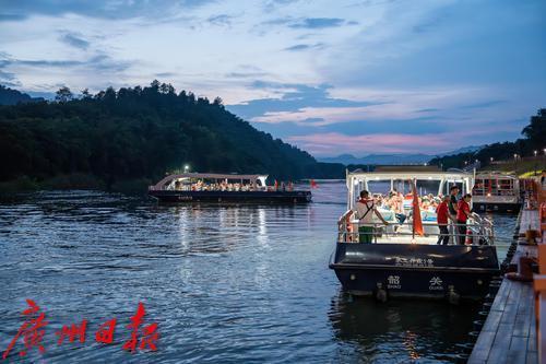 傍晚,乘客坐上游船享受五公里的丹霞实景夜游。