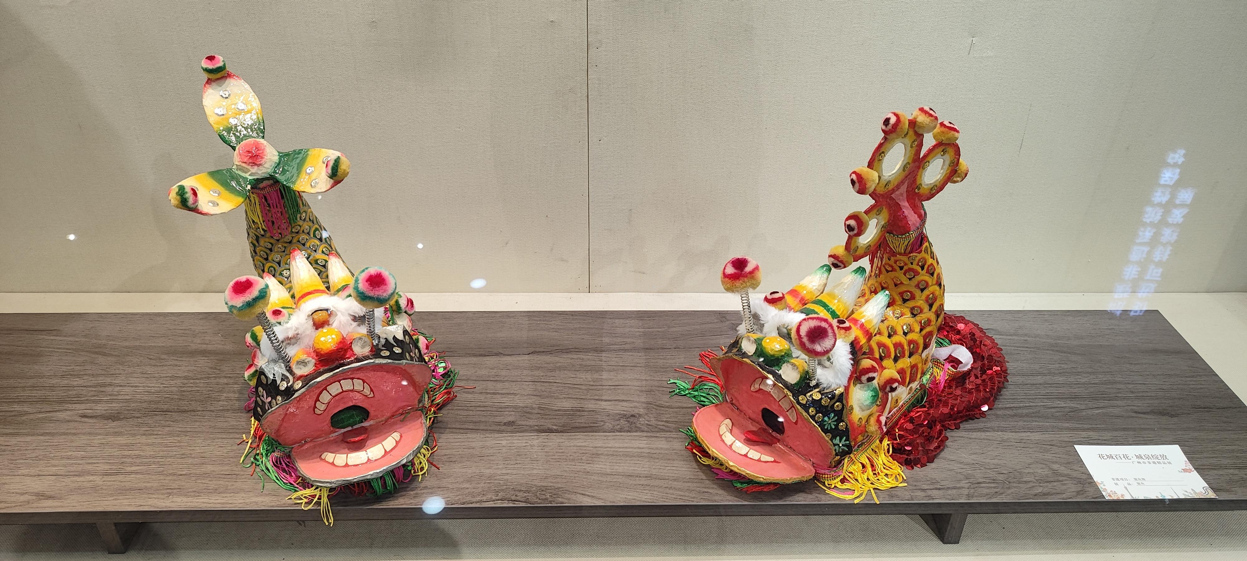 在“广作华彩”版块,观众能够欣赏到广州玉雕的精雕细琢、广彩的流光溢彩、广绣的精妙绝伦,感受到了传承人坚守与匠心。在“食在广州”板块,观众从腊味的醇厚、凉茶的甘苦里,感受到广州的“烟火气,”读懂“不时不食”的岭南哲学。在“粤韵流芳”版块,传承人用剪纸作品展示了粤剧艺术家红线女、罗家英的舞台形象,观众仿佛置身于戏院欣赏粤剧。观众还可以领略到“岁时节庆”的欢愉、“医养岭南”的智慧、“南拳强身”的刚劲、“羊城古仔”的趣闻。七大版块像七朵绽放的岭南繁花,织出一幅鲜活的“花城图鉴”。在以醒狮为背景的打卡墙,观众可以亲手触摸醒狮,仿佛置身于醒狮赛的现场。通过动态影像、实物展示和互动体验,展览全方位展示了岭南文化的独特魅力。