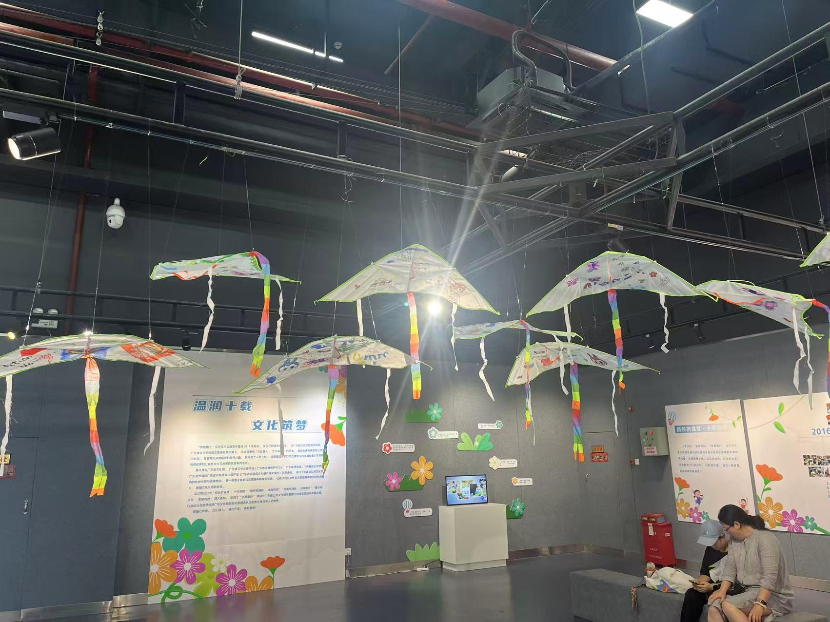 展览第一部分以时间为轴,通过照片墙的方式展示“志愿童行”文化艺术夏令营走过的十年历程。十年来,通过活动升级、资源联动与常态运营,项目服务覆盖面与影响力不断提升。2024年,随着广东省非物质文化遗产馆加入,项目形成五大省级馆协同发力的全新格局。今年项目更迈入全域化发展新阶段:在省级馆的示范引领下,“志愿童行”首次联动全省各地公共文化场馆,辐射佛山、韶关、揭阳等地市,共同构建起覆盖省、市、区三级的立体化服务网络,开启“多城文化共育”新篇章。