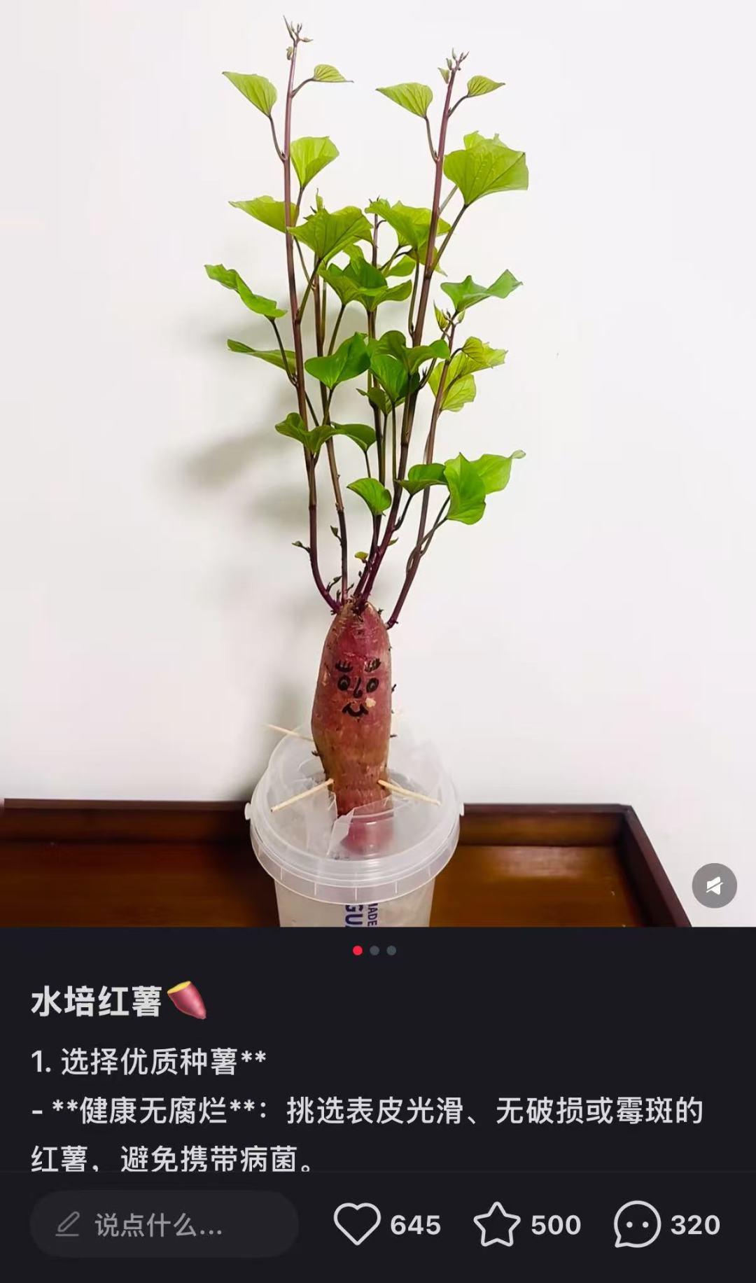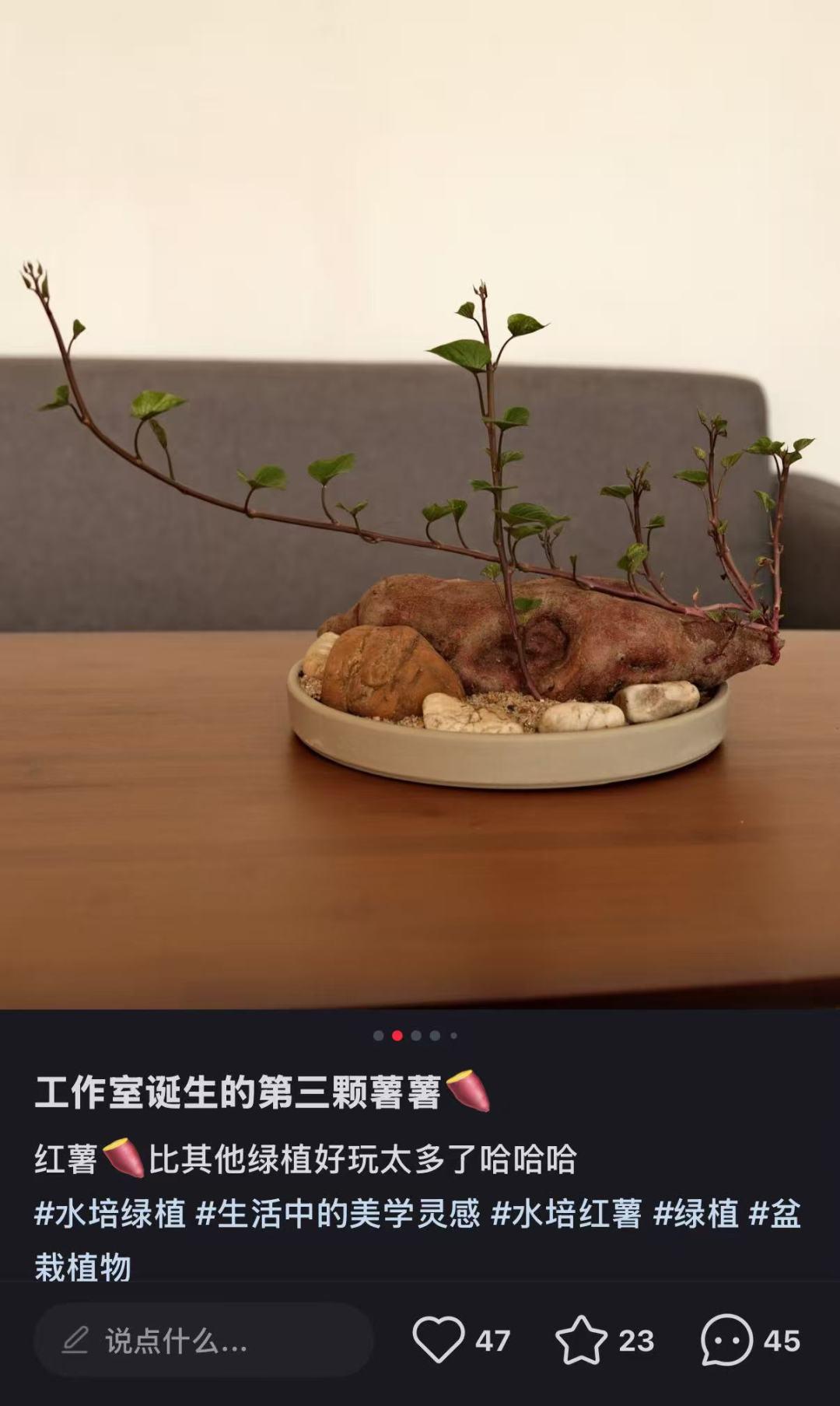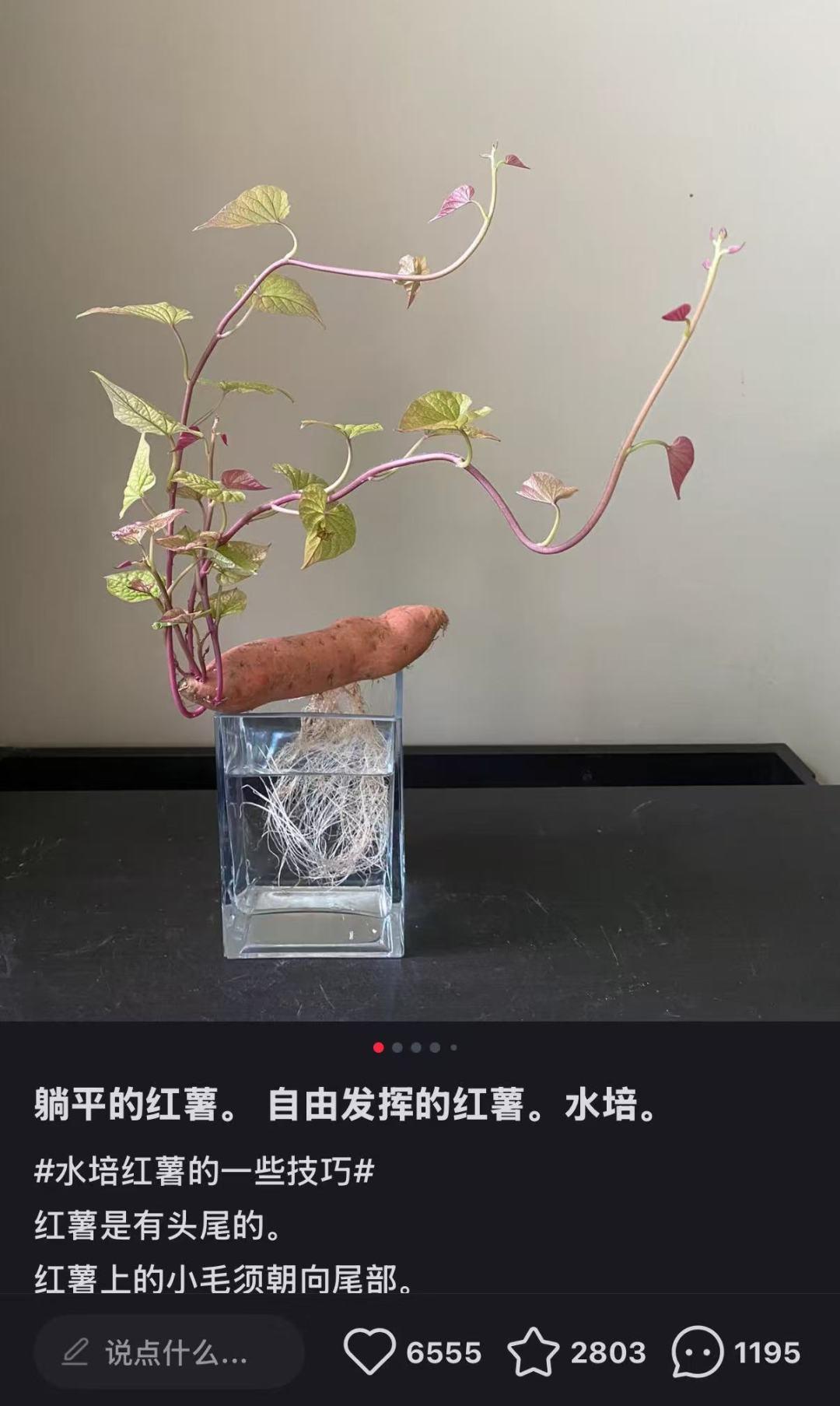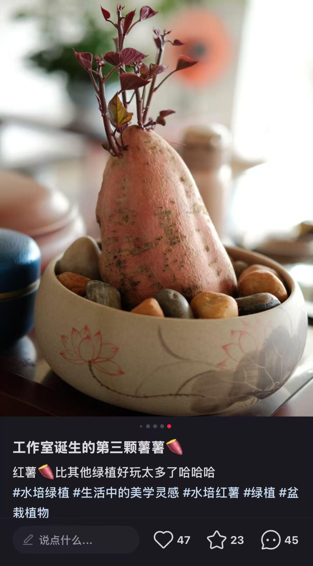 网友在社交平台上分享的水培红薯,也太好看了吧。