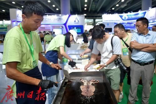 参展商现场烹饪的海产品吸引了众人试吃。