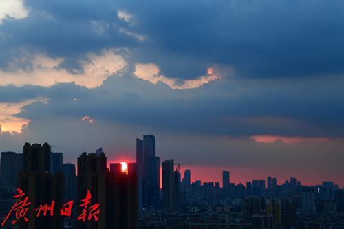 傍晚广州霞映天际。