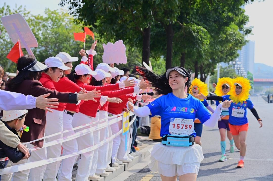 回首过往,黄埔马拉松赛事亮点频出。2024年,赛事吸引了来自17国55城的20000名跑者参赛,总报名人数超6.7万人。恰逢广州开发区建区40周年,赛事赛道途经多家高新技术企业,让跑者在奔跑中深度领略广州开发区、黄埔区产城融合发展的成果。