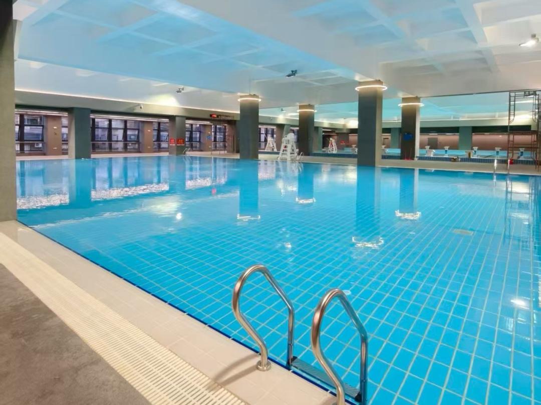 游泳馆按照国家体育场馆标准建设,配备国际标准的泳池系统、计时设备和观众看台。7楼设有国际标准50米恒温泳池一个,5楼设专业训练池及儿童池各一个。除承接专业赛事和训练任务外,还常态化向公众开放,并推出青少年游泳培训、公益惠民等多样化服务。