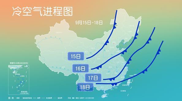 今年下半年第一场大范围冷空气过程来袭!受其影响,今天(9月15日)开始至18日,我国中东部大部地区气温下降,北方气温将大面积创立秋后新低,南方旷日持久的高温也将暂告一段落。