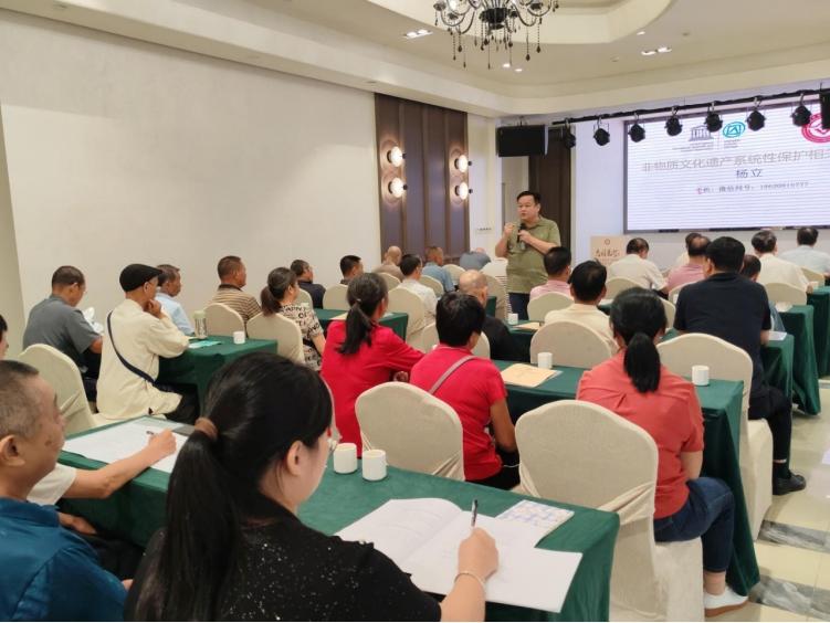 在非遗传承人群培训班上,广东省非物质文化遗产保护中心杨立副研究馆员围绕“非物质文化遗产系统性保护相关问题”作专题授课,从非遗代表性项目及代表性传承人现状分析、非遗代表性传承人传承活动问题、非遗衍生品开发及非遗有关词汇表述等多维度、多视角,全面阐释了新时代扎实做好非遗系统性保护的重要意义及相关问题。