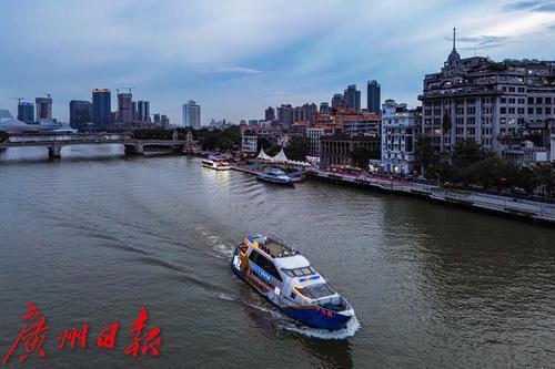 渡轮行驶在珠江上。