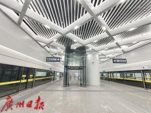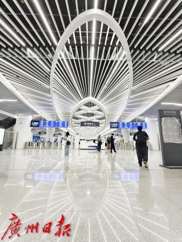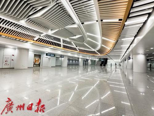 地铁十一号线琶洲站与广州东环城际铁路琶洲站相连的站厅。