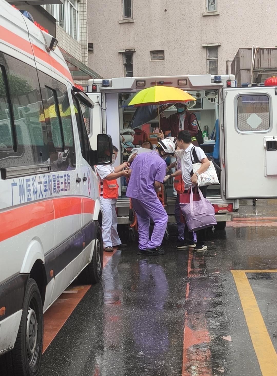 9月24日上午10时,中山大学孙逸仙纪念医院急诊科医生院前出车,冒着暴风雨接回一位腹痛的患者,经诊断为急性胃炎,现治疗后腹痛已缓解。