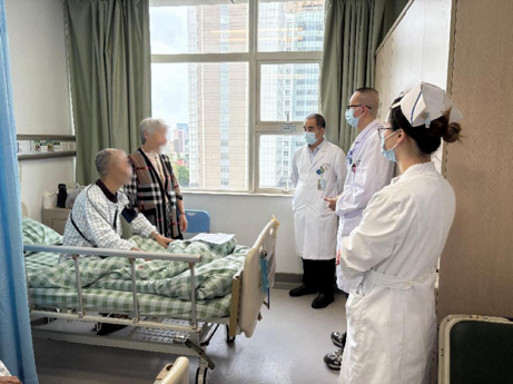 在血管外科病区,该科主任医师张智辉带领医护团队坚守岗位。为了今早能顺利交接班,他们昨晚就提前回到病房。一早,接班、查房、手术安排如期进行。