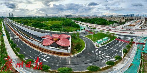 海珠湾广州市番禺区浦华段,一朵红色的大“木棉花”为周边的环境增添生机。