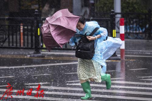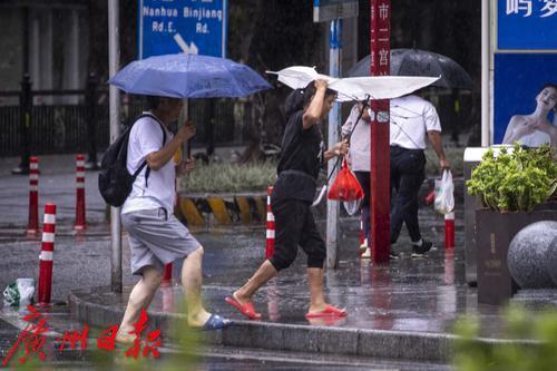 9月24日,超强台风“桦加沙”进一步逼近广东,预计将于24日下午到夜间在台山到徐闻之间沿海登陆。上午11时许,记者见到,广州海珠区江南大道北路上行人行车稀少,广州雨势较大,风势较强,阵风更是能把路人雨伞吹翻。