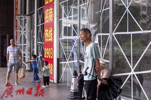江南大道北,临街商铺的玻璃门都贴上米字胶带防风。