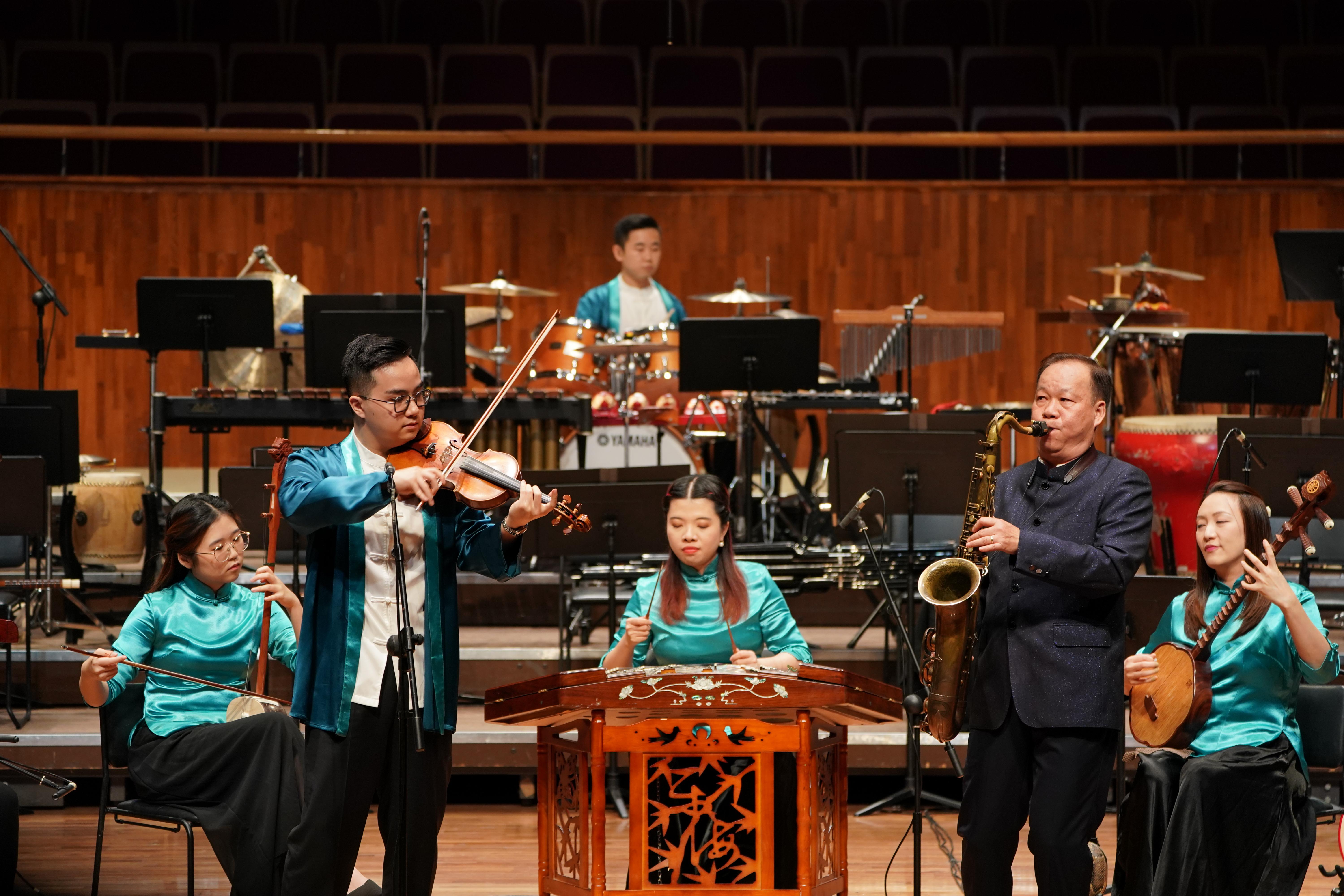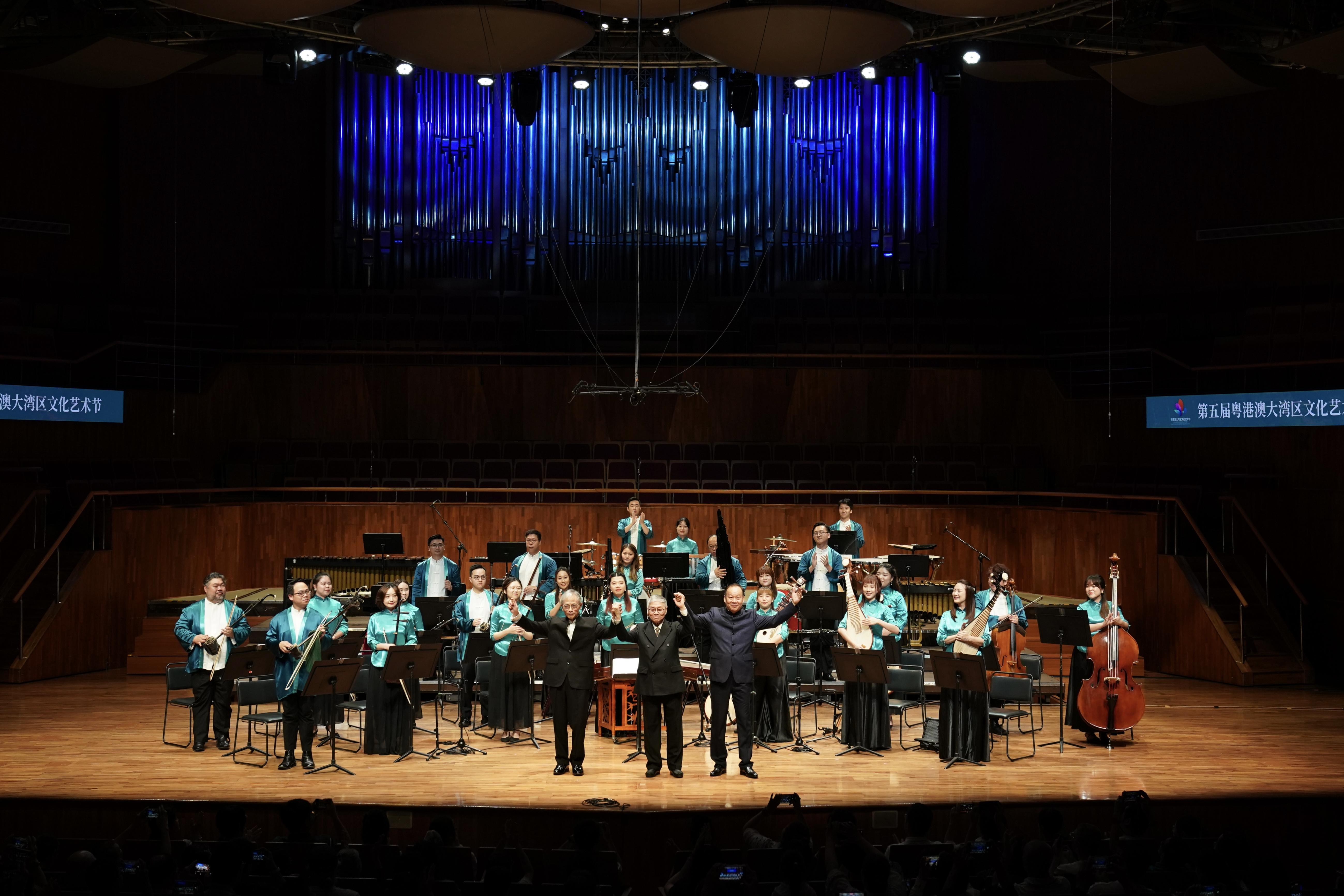 现场,香港竹韵小集乐团在知名指挥家何文川任艺术指导下,创新演绎《弦歌趣韵》《娱乐升平》《饿马摇铃》《侠骨柔情——顾嘉辉金曲联奏》等十余首精心雕琢的粤乐佳作,涵盖经典曲目与全新创作。粤剧大师阮兆辉演唱濒临失传的传统曲艺“地水南音”经典《客途秋恨》、粤剧大调《柳摇金》;一级演奏员陈芳毅一人玩转加键长喉管、唢呐、萨克斯三大乐器。返场的三首作品《新彩云追月》《旱天雷》《东方之珠》,更让现场观众惊喜不已,掌声、欢呼声经久不息。