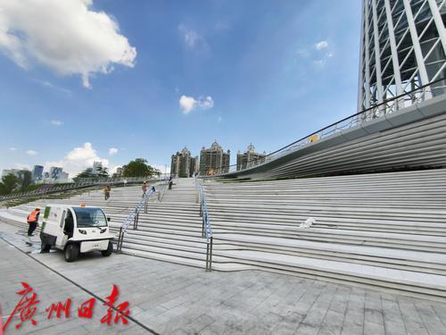 广州塔滨水大台阶位于广州塔北侧,是满足市民游客休闲游憩的重要亲水平台之一。