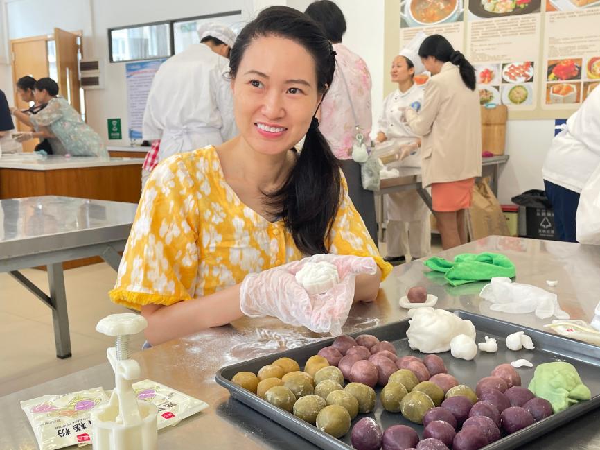 大家边做边聊,场面温馨又热闹。很快,一个个独一无二、创意十足的冰皮月饼便制作完成。众人现场尝鲜,冰凉软糯的口感赢得满屋“哇”声,不少学员笑说:“太好吃了!回家要再和家人做一次,一起品尝这份中秋团圆味。”