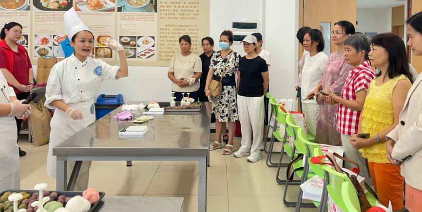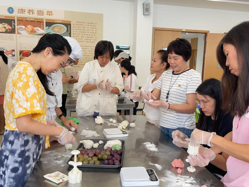 9月28日下午,广州市轻工技师学院东校区内香气四溢、笑语盈盈,由大东街道羊城家政基层服务站、大东街道就业驿站、中山三社区、广州市轻工技师学院联合打造的“月映大东・冰皮手作体验班”在这里火热开课。