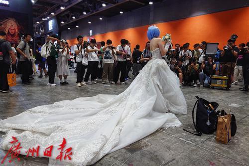 国庆期间场馆内外人气爆棚,人山人海,不少动漫、游戏爱好者以自己喜爱的“二次元”角色装扮亮相。