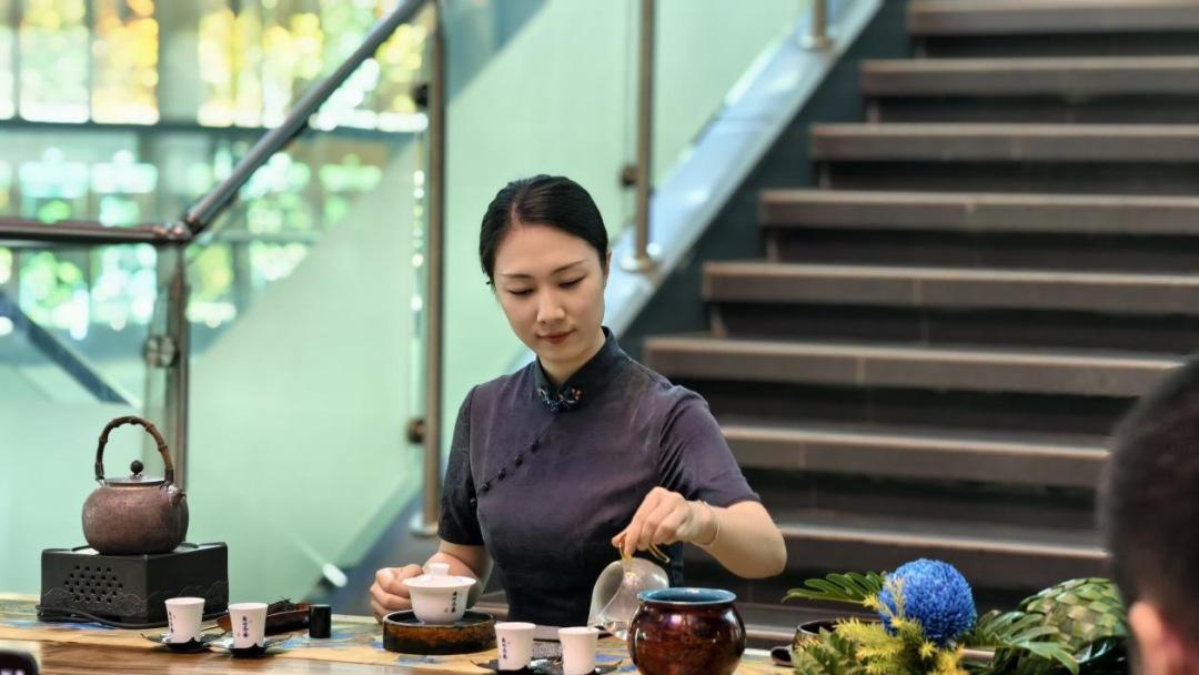 开幕仪式上,广州中医药大学江蓠汉服社的同学们带来《霓裳一梦》汉服表演,衣袂翩跹间重现古韵风华;广州茶艺第五代传承人徐玉娴老师现场演绎岭南插花与传统茶艺,花姿清雅、茶香悠远,为观众带来沉浸式的文化体验。