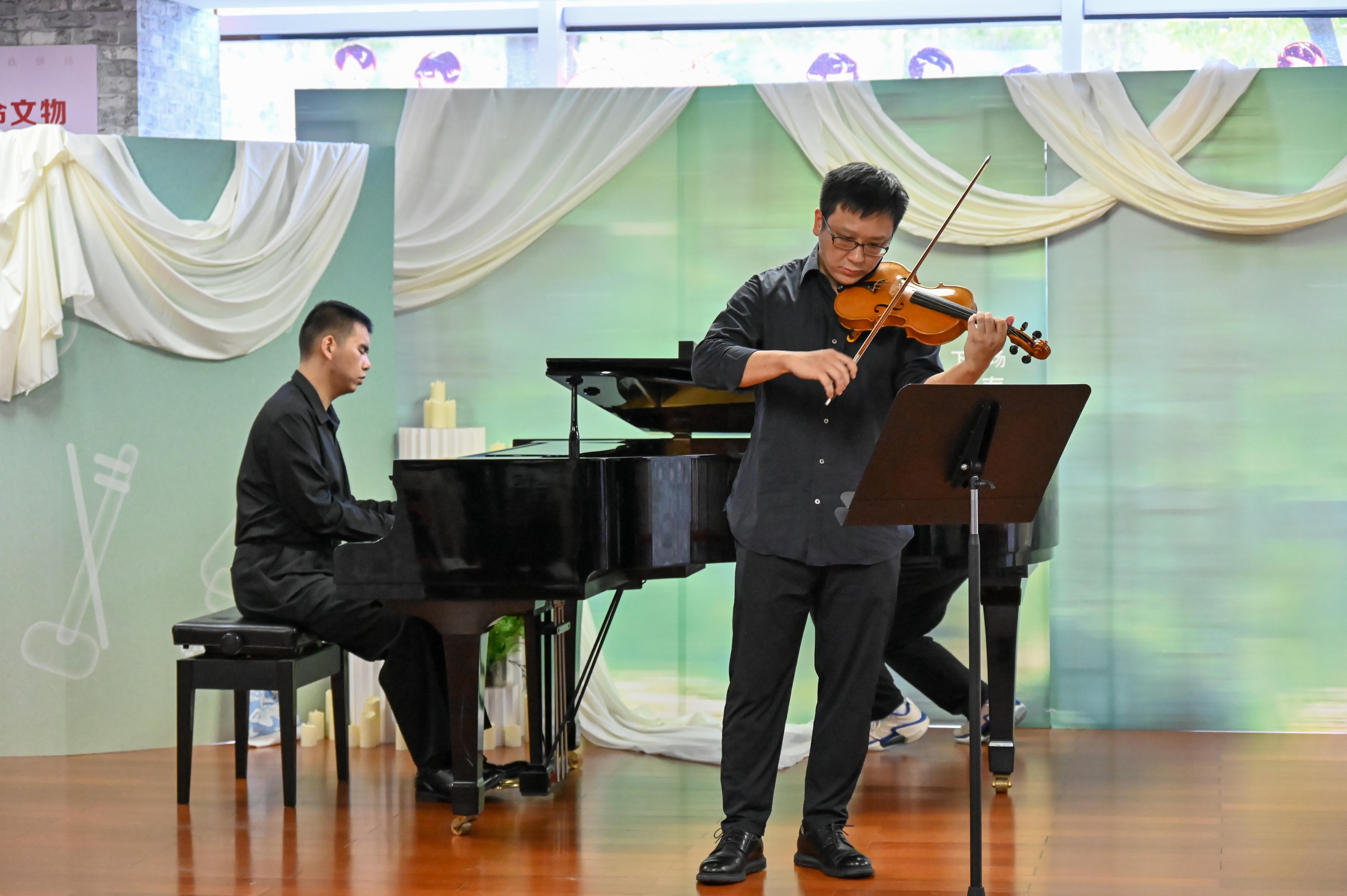 下半场的主题为“中西对话”,以钢琴与小提琴、二胡、弦乐五重奏的多重组合展开。视障钢琴演奏者王广彬与李兆麟老师合作的《F大调第五钢琴小提琴奏鸣曲》让人感受到音乐跨越感官障碍的力量;《平湖秋月》以钢琴与小提琴的对话,展现了传统粤乐与西方语汇的和谐融合;《越人歌》的古意与现代音色相交织,回荡着楚越文化的柔婉之美;而压轴曲《落花天》,以弦乐五重奏重新演绎岭南旋律,象征中西艺术交汇之处的生机与希望。