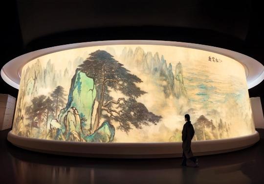 “光影美术馆”则落地于上海城区苏州河边,在中华艺术宫内的时光长廊、圆形玻璃厅以光影艺术的方式呈现,选取岭南画派代表艺术家,通过数字化手段对传统艺术作品进行当代性转换,用科技赋予传统水墨艺术全新的视觉体验,打破传统静态展示方式,增强观众互动与沉浸感,让传统绘画作品完成一场穿梭在城市中的现代演绎。