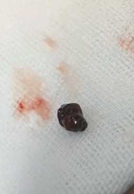 随后,通过电子纤维支气管镜,医生在小希的支气管中精准找到了异物,用特制的异物钳小心翼翼地夹住后慢慢取出来,果然是一粒葡萄籽。取出异物后,小希咳嗽喘息的症状明显减轻,吃奶和睡觉很快正常了。